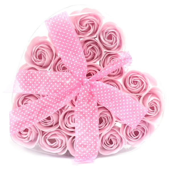 24stk såpeblomster i roseform i en hjerteformet boks.